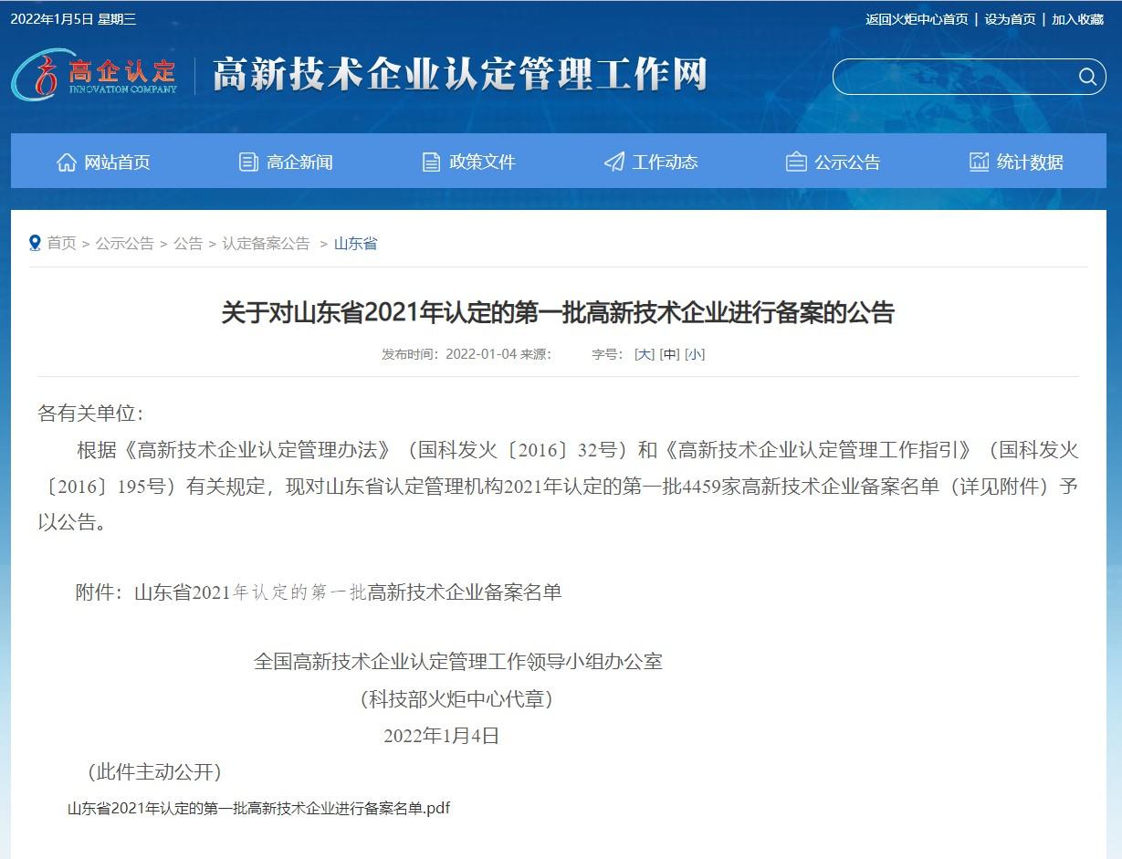 近日,全国高新技术企业认定管理工作领导小组办公室发布了《关于对山东省2021年认定的第一批高新技术企业进行备案的公告》,山东孚德环保有限公司榜上有名。