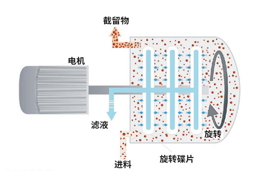 若干圈密集的纳滤级陶瓷盘片安装在转子上,料浆被注入料浆槽后,高速旋转转子对过滤板表面施加切向力,表面少量附着在膜上的固形物被不断带走,同时因真空吸力,滤液切线通过膜层,并从分配阀进入滤液罐。料浆槽内的料浆浓度不断提高,到达一定程度后自动排出,这样就获得了极高浓度的料浆。运行一段时间后,可采用反冲洗、超声波、低浓度酸清洗过滤板。起分离作用的核心元件,膜的过滤精度涵盖微滤和超滤,具体有不同规格。CDC控制系统自动调节转子的转速,间歇进行进料和排空,设备的操作简易、设备需定时进行陶瓷平板膜清洗维护。
