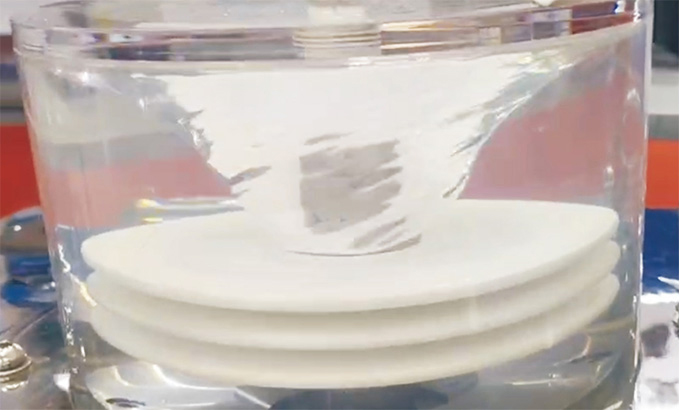 其过滤精度可达7nm-200nm ,滤液清澈,减少了后端处理的成本。其洗涤效率极高,能使用少量洗水将物料中的离子含量降低。在使用中滤膜不会出现胶体堵塞现象,大幅 减少了停机维护。该盘片具有极强的化学耐受性和耐热性,可反向冲洗。